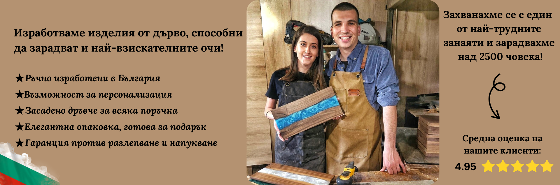 Да, горди сме да кажем, че всяко изделие е лично произведено от нас - от закупуването на дървен материал до опаковането и изпращането.