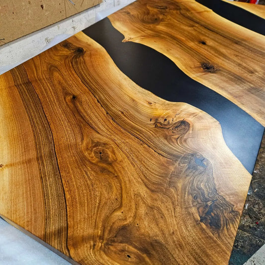 Разтегателна трапезна маса - европейски орех и епоксидна смола