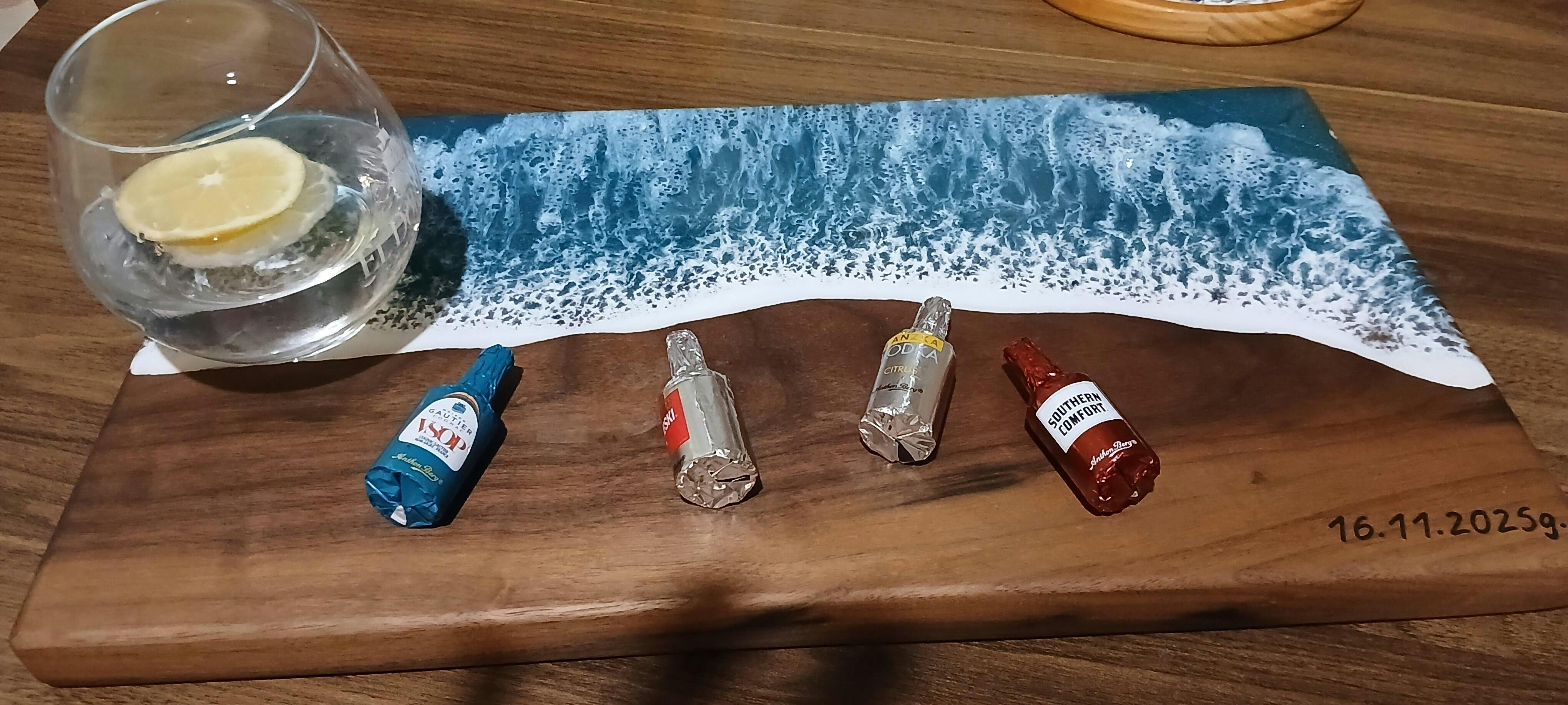 Наричат я течно стъкло. Тя е по-твърда от дървото, издържа на температури до 50 градуса и е със сертификат за безопасност за допир с храни, което я прави повече от перфектно допълнение към нашите дъски.
